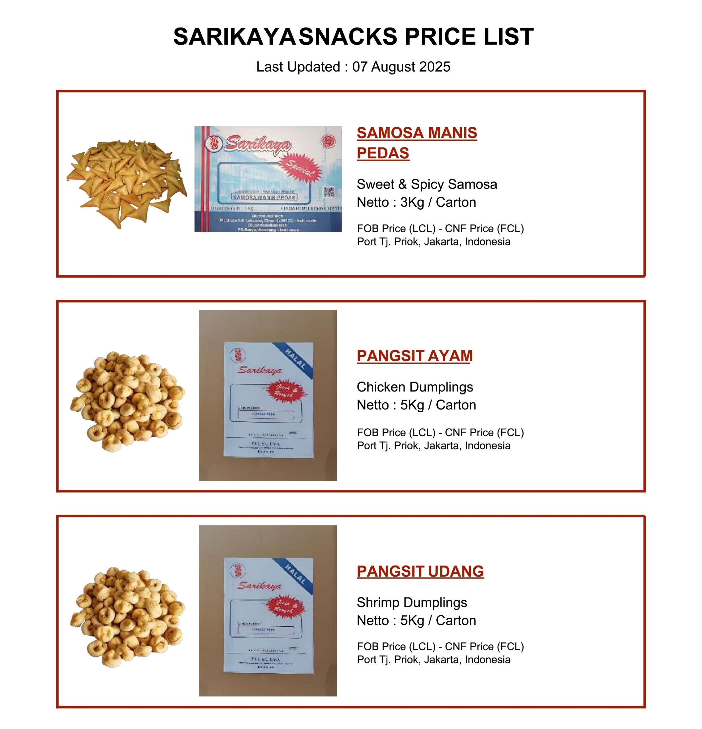 Indonesian Traditional SnacksAll products that we offer to the market are renowned for purity, and healthy ingredients control contents approved by AVA Singapore.